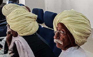 The men who board the buses at rustic spots are usually dressed in white kurtas with white jodhpurs: loose fitting baggy trousers, which are tight around the ankles. I write “white” but these clothes are often stained, the result of working in the fields. These men, often with weather worn faces, wear turbans, which to my western eyes, makes them look quite exotic.